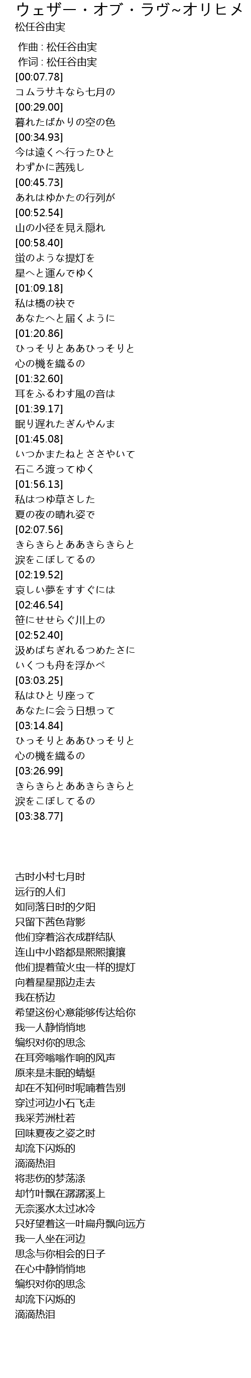| [00:01.00] | 作词 : 松任谷由実 |