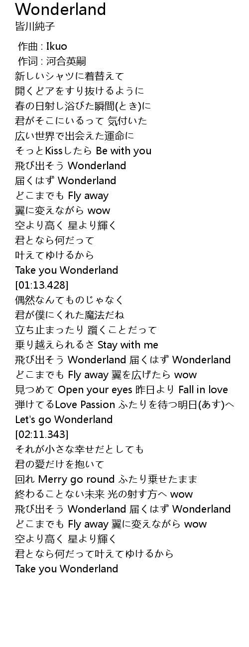 | [01:43.207] | 飛び出そう Wonderland 届くはず Wonderland |