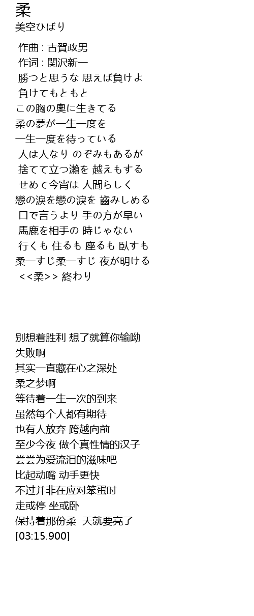 柔一すじ柔一すじ 夜が明ける |