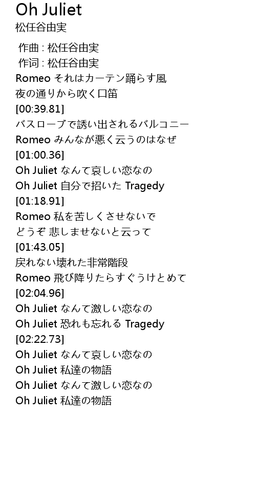 | [02:59.35] | Oh Juliet なんて哀しい恋なの |