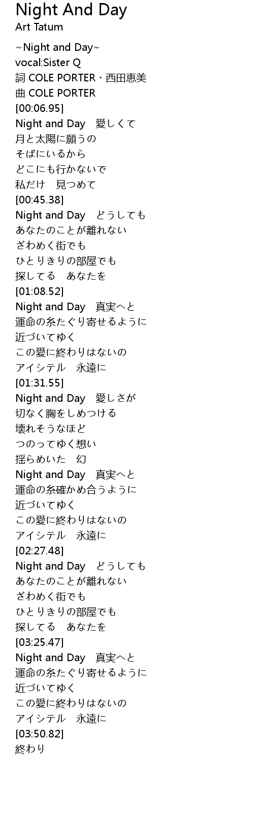 | [00:04.89] | 詞 COLE PORTER・西田恵美 |
