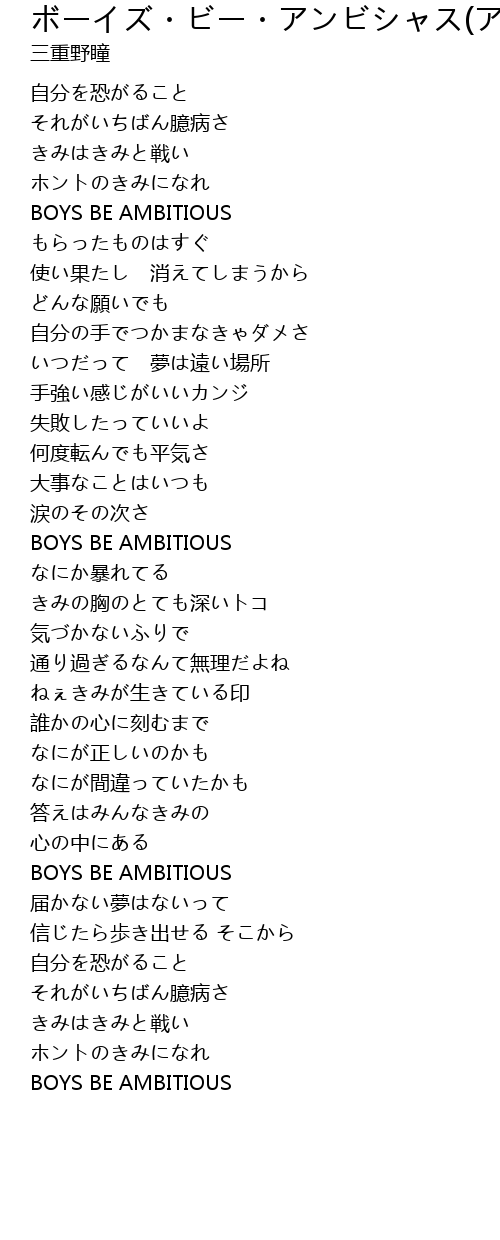 | [00:23.1] | BOYS BE AMBITIOUS |