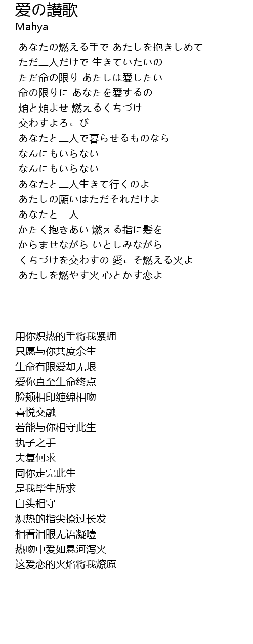 あたしを燃やす火 心とかす恋よ |