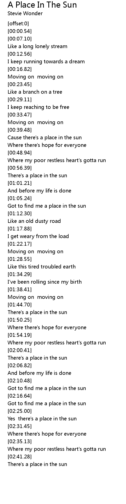 Yes there's a place in the sun |