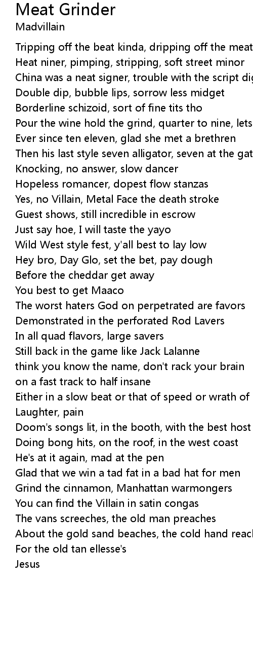 Tripping off the beat kinda, dripping off the meat grinder |