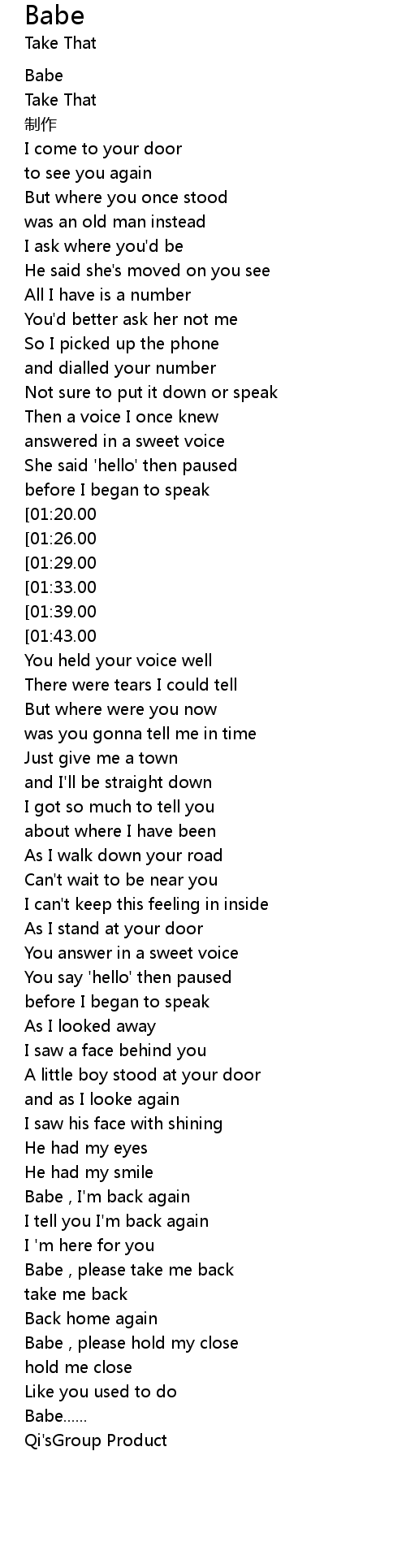 | [03:48.00] | Babe , please take me back |
