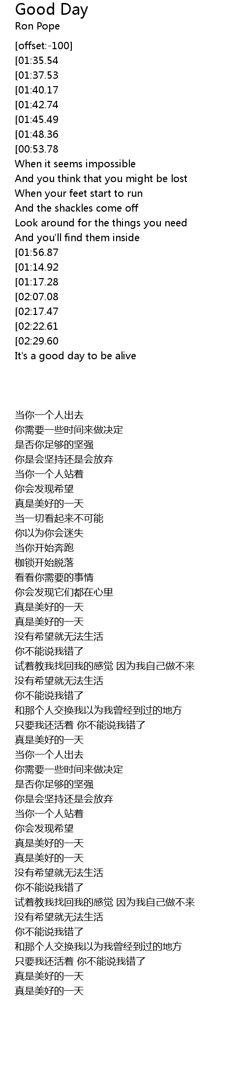 'Cause it's a good day to be alive |