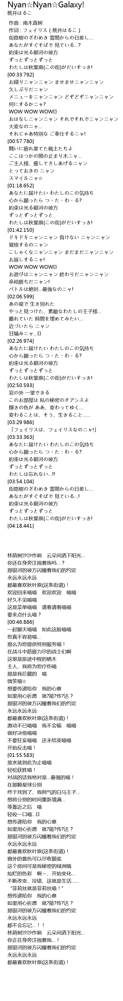 | [00:00.24] | 作词 : フェイリス(桃井はるこ) |