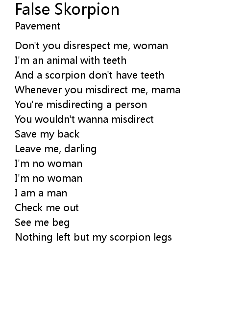 | Nothing left but my scorpion legs |