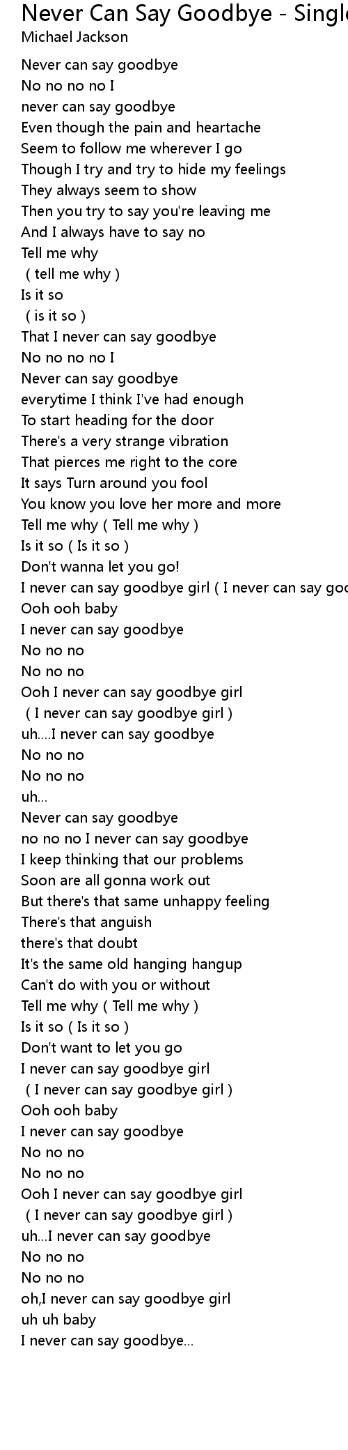 | Song | Never Can Say Goodbye - Single Version |