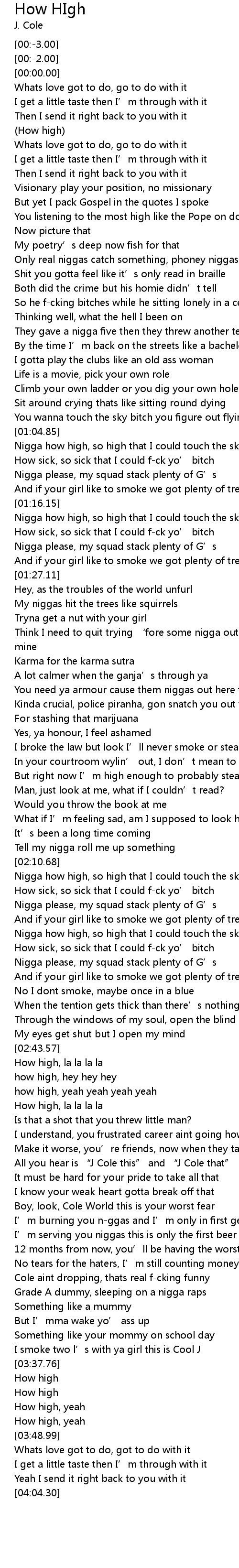 | [03:02.55] | All you hear is " J Cole this" and " J Cole that" |
