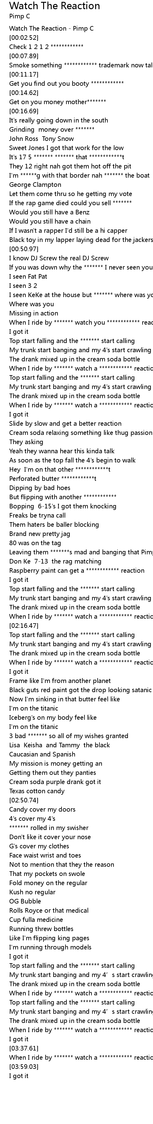 | [00:00.65] | Watch The Reaction - Pimp C |