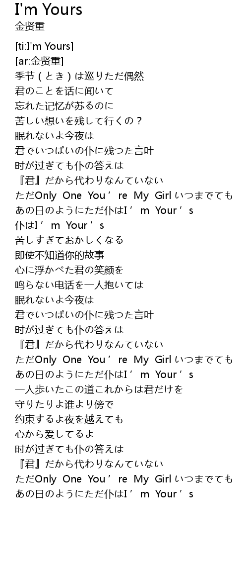 | [02:54.494] | あの日のようにただ仆はI ’m Your ’s |
