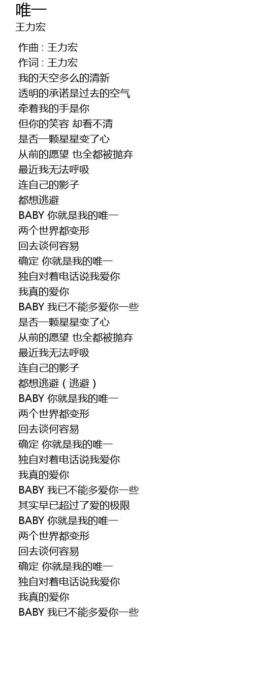 | [02:29.298] | BABY 你就是我的唯一 |