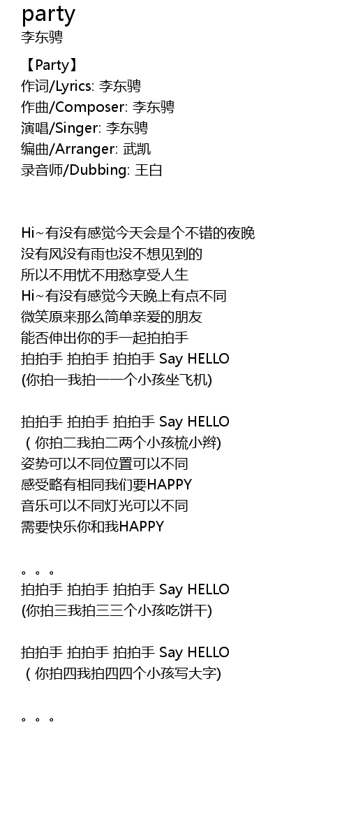 | pāi pāi shǒu pāi pāi shǒu pāi pāi shǒu Say HELLO | |