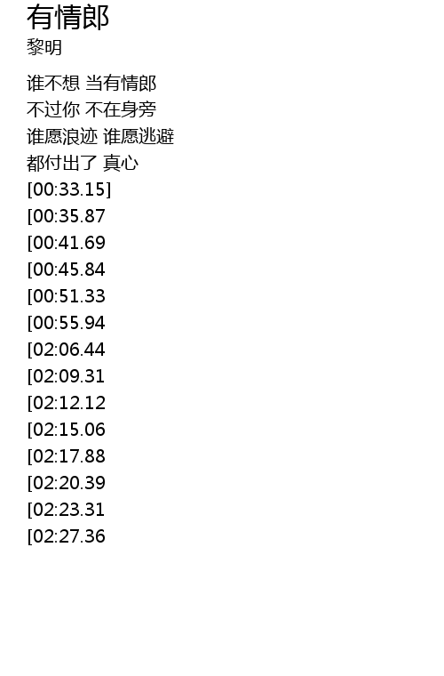 | [01:44.37][00:35.87] | 我也想 当有情郎 |