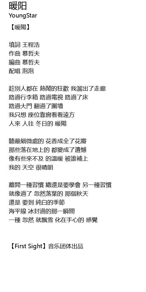 | 趁別人都在 熱鬧的狂歡 我溜出了走廊 | |