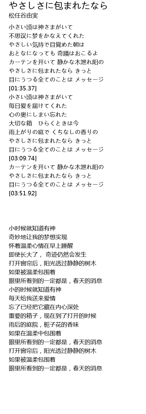 やさしさに包まれたなら きっと |