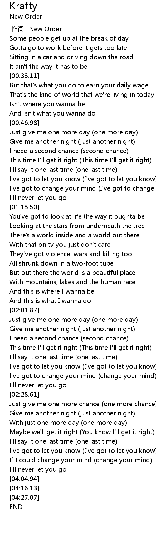 | [00:00.00] | 作词 : New Order |