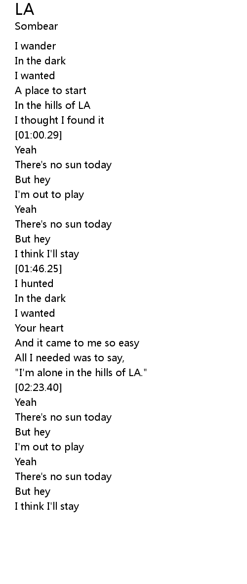 | [00:49.56] | In the hills of LA |