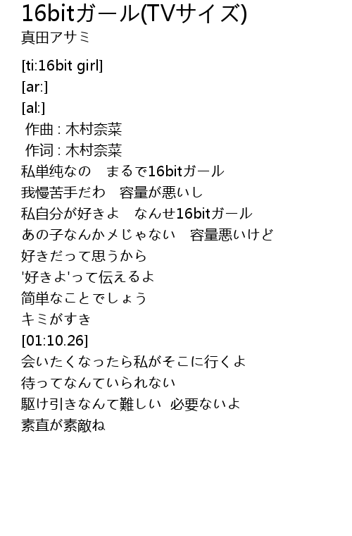 | [00:43.67] | 私自分が好きよ なんせ16bitガール |