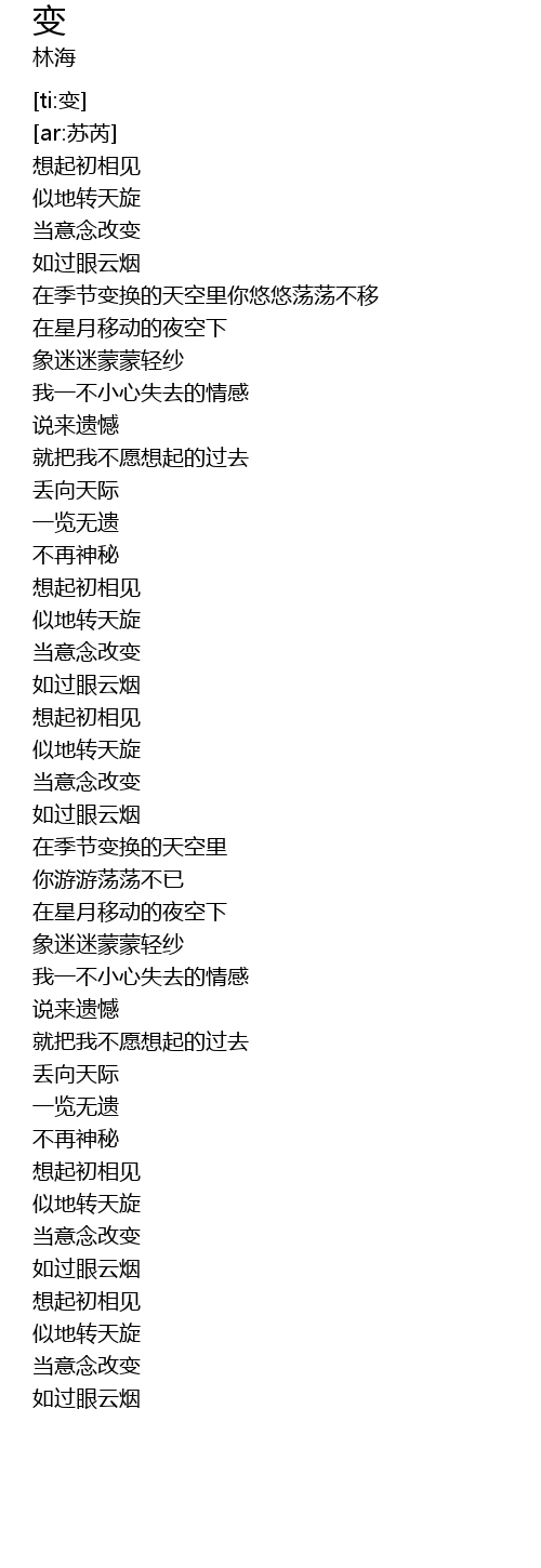 | [00:39.251] | 在季节变换的天空里你悠悠荡荡不移 |