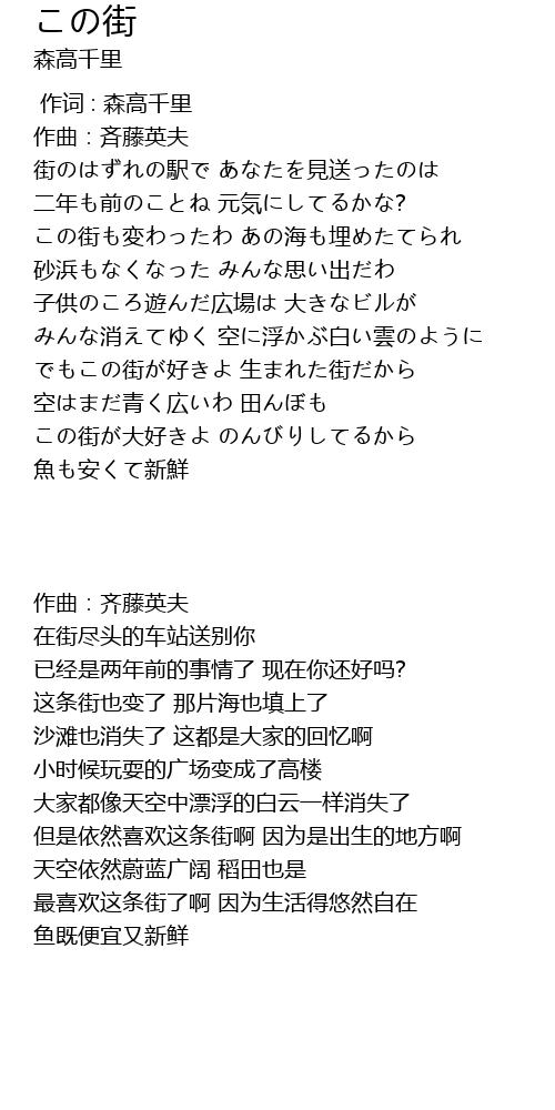 | [01:45.954] | この街が大好きよ のんびりしてるから |