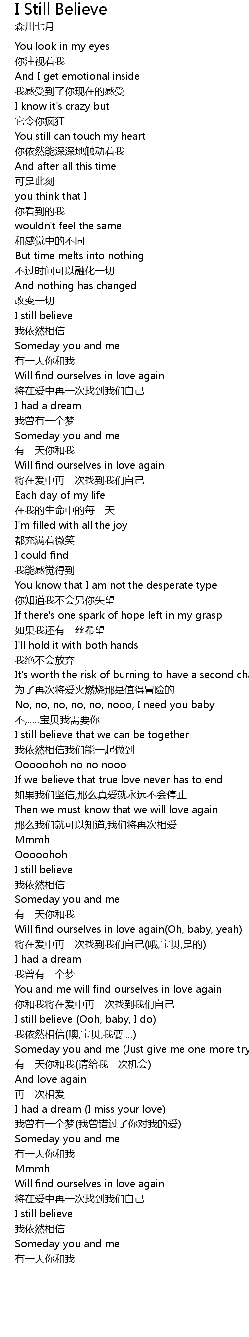 | wǒ yī rán xiāng xìn wǒ men néng yì qǐ zuò dào | |