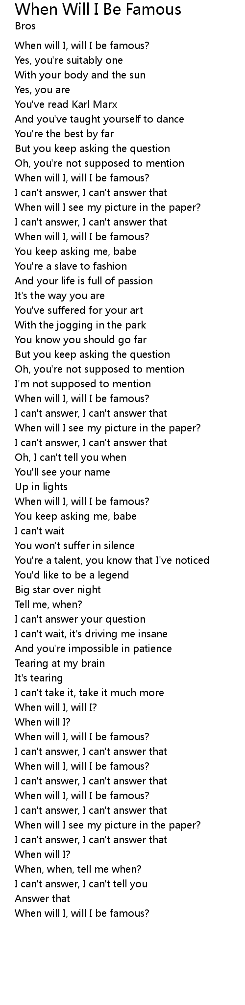 When will I, will I be famous? |
