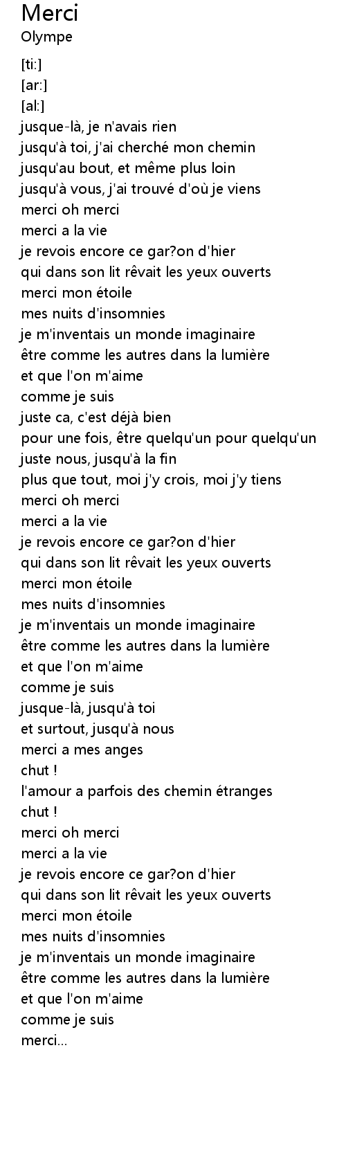 | [00:44.54] | merci oh merci |