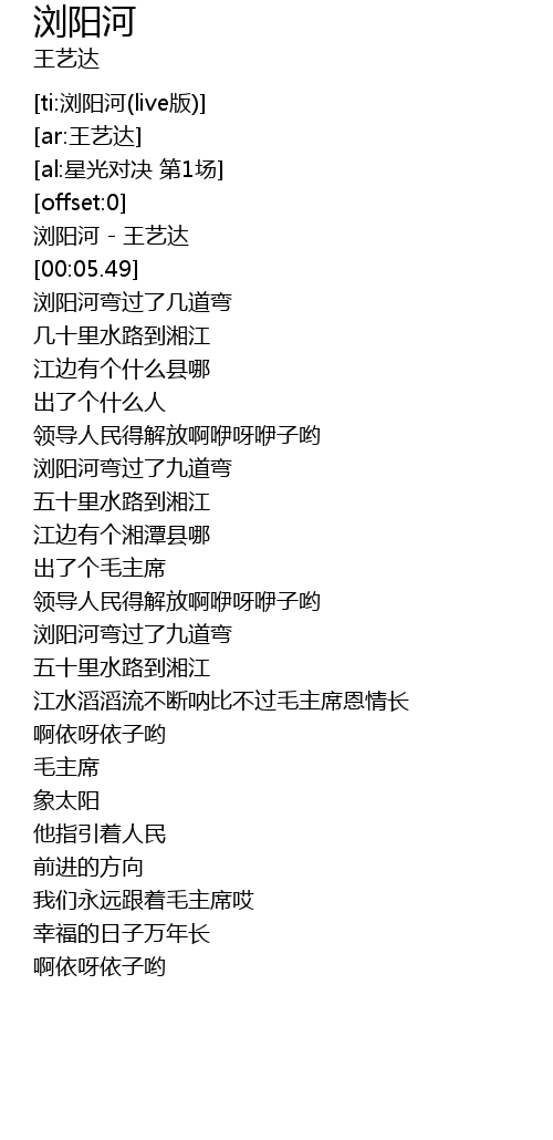 | [02:25.61] | 江水滔滔流不断呐比不过毛主席恩情长 |