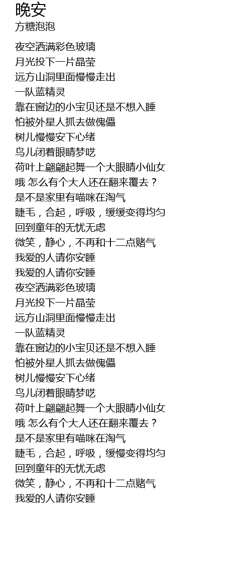 | [01:50.220] | wǒ ài de rén qǐng nǐ ān shuì |
