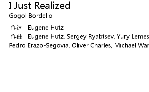 | [00:00.000] | zuo qu : Eugene Hutz, Sergey Ryabtsev, Yury Lemeshev, Thomas Gobena, Pedro ErazoSegovia, Oliver Charles, Michael Ward |