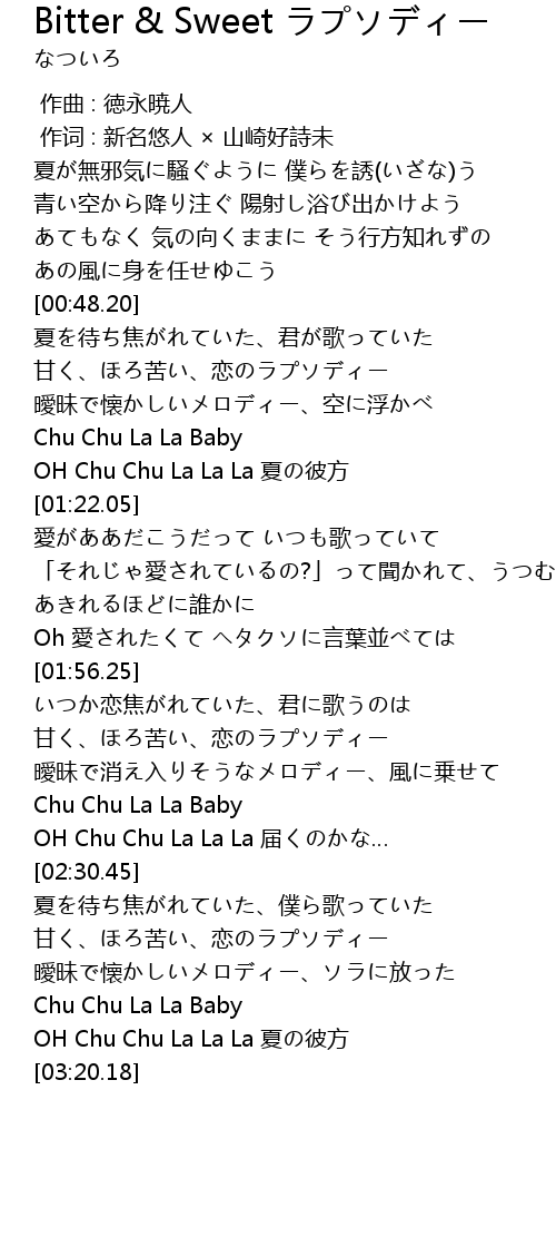 | [02:06.16] | 甘く、ほろ苦い、恋のラプソディー |