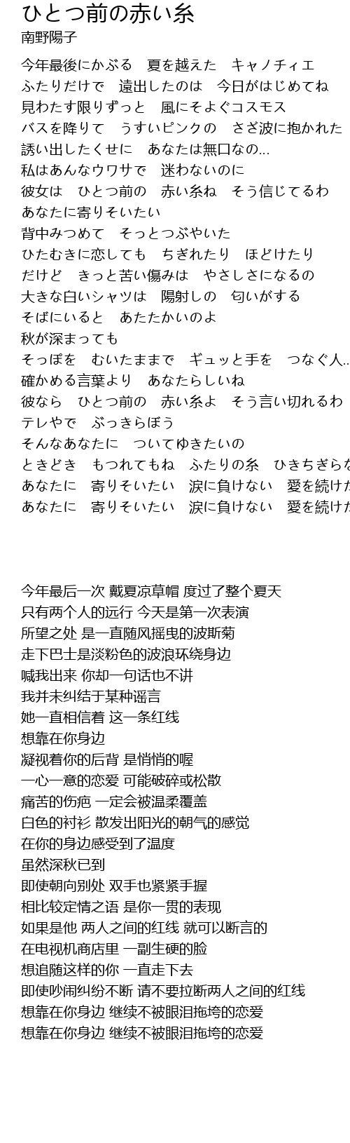 | [02:58.43] | 彼なら ひとつ前の 赤い糸よ そう言い切れるわ |