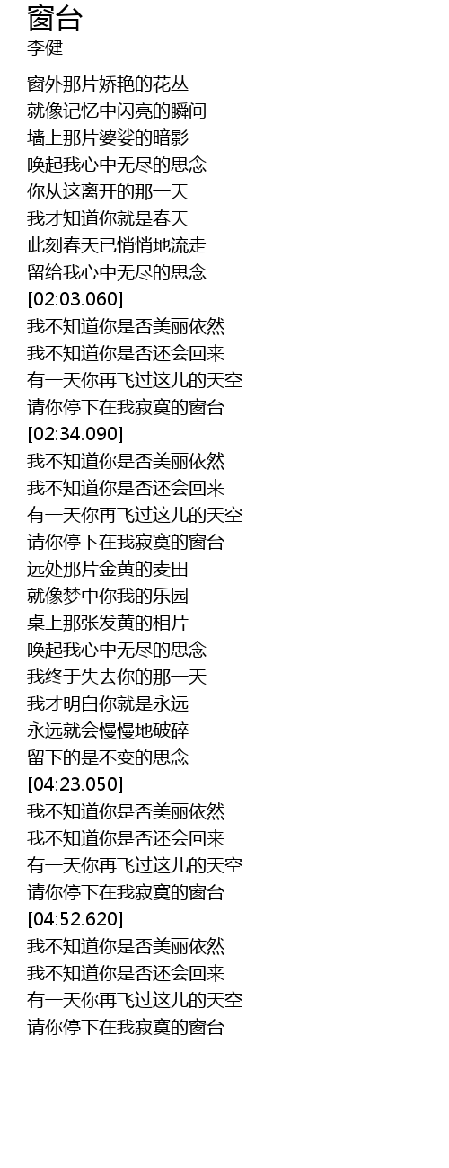 | [02:58.640] | 请你停下在我寂寞的窗台 |