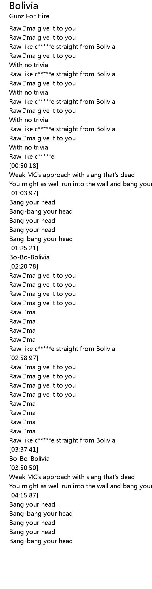 Raw like c*****e straight from Bolivia |