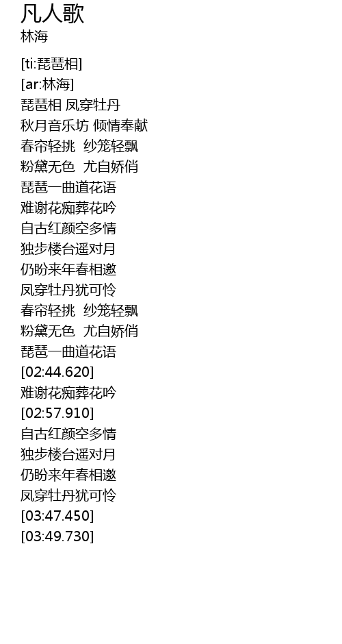| [03:34.40] | 凤穿牡丹犹可怜 |
