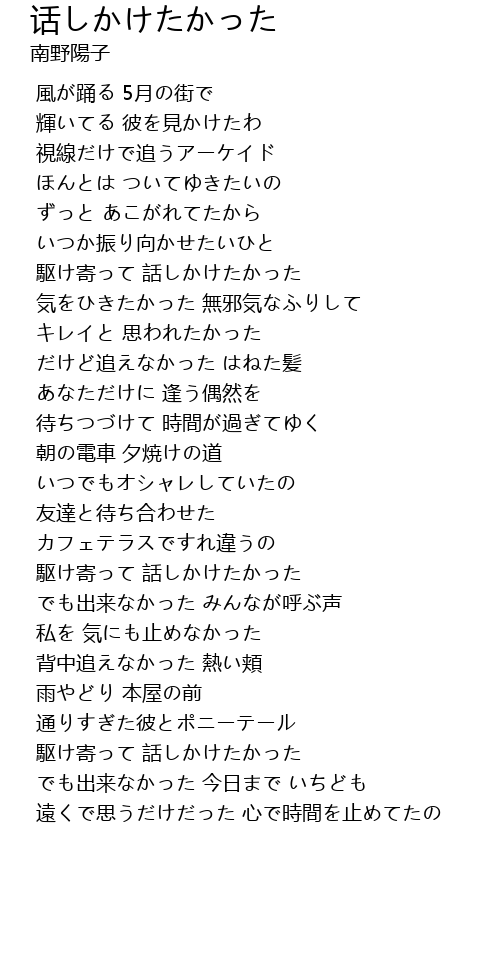 | [02:38.282] | 駆け寄って 話しかけたかった |