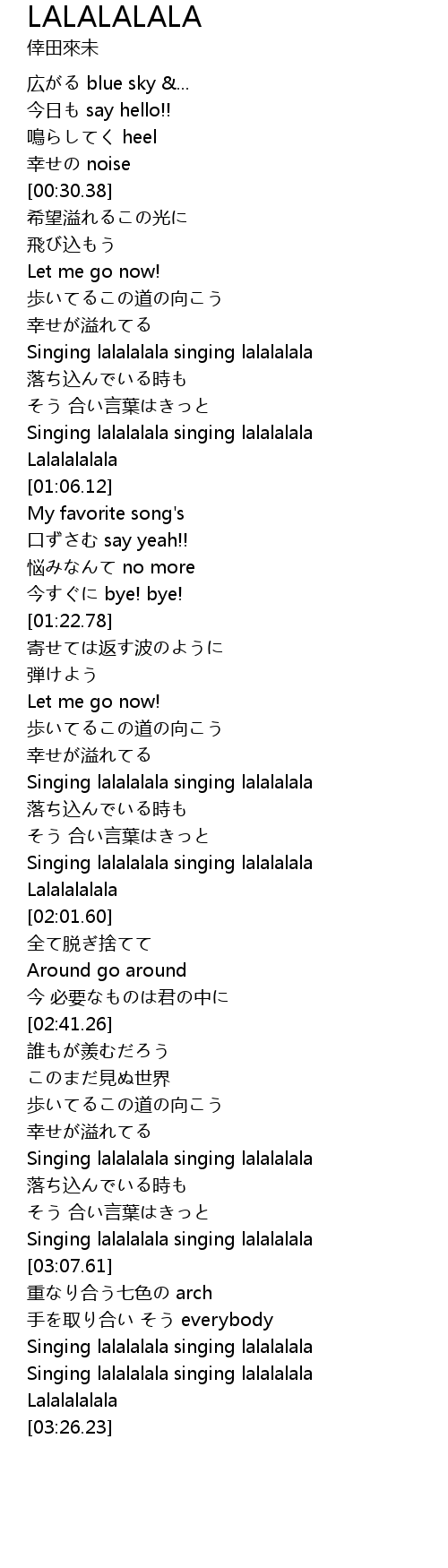 | [03:19.32] | Singing lalalalala singing lalalalala |