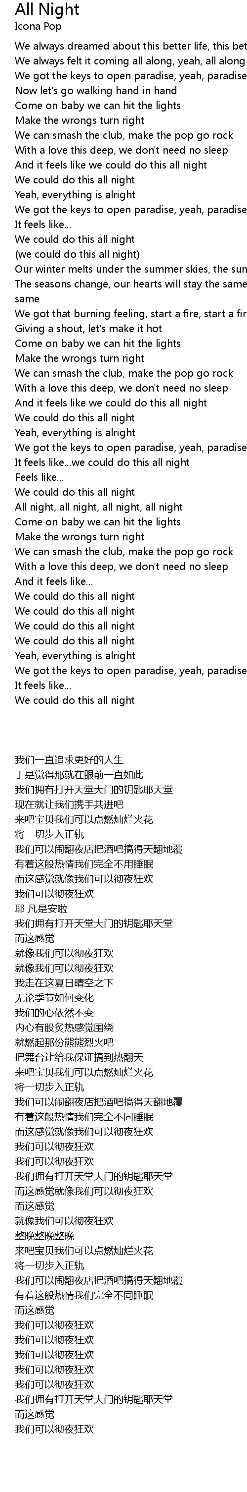 | [02:31.910] | All night, all night, all night, all night |