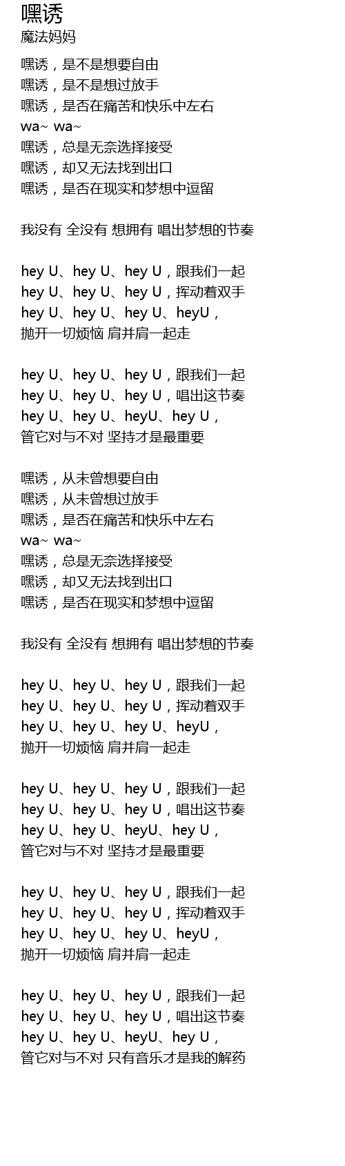| hey U、hey U、hey U,唱出这节奏 | |