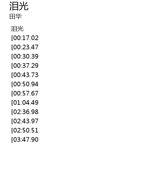 | [02:03.55] [00:37.29] | 我看到你眼里的泪光 |