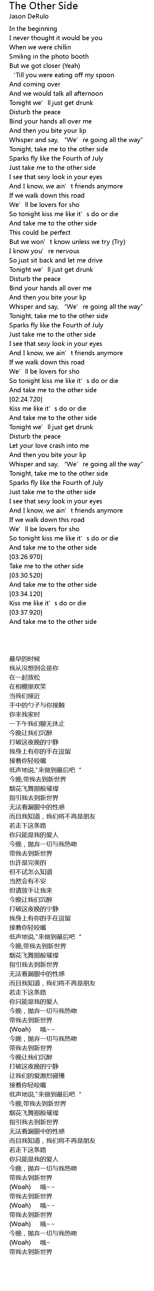 | [00:48.500] | Tonight, take me to the other side |