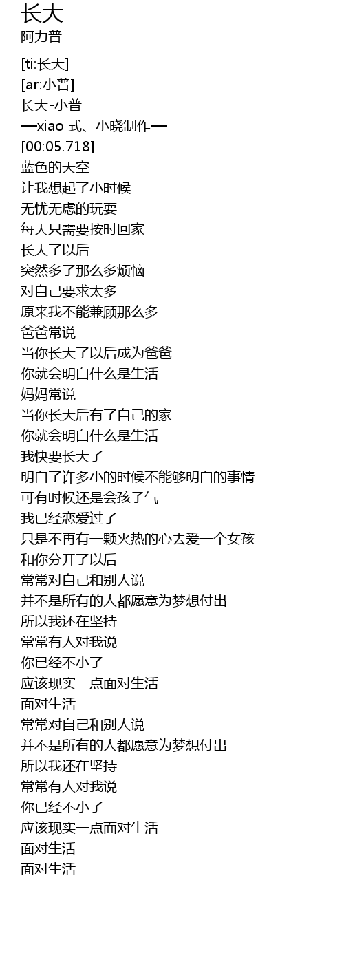 | [00:01.167] | 长大-小普 |