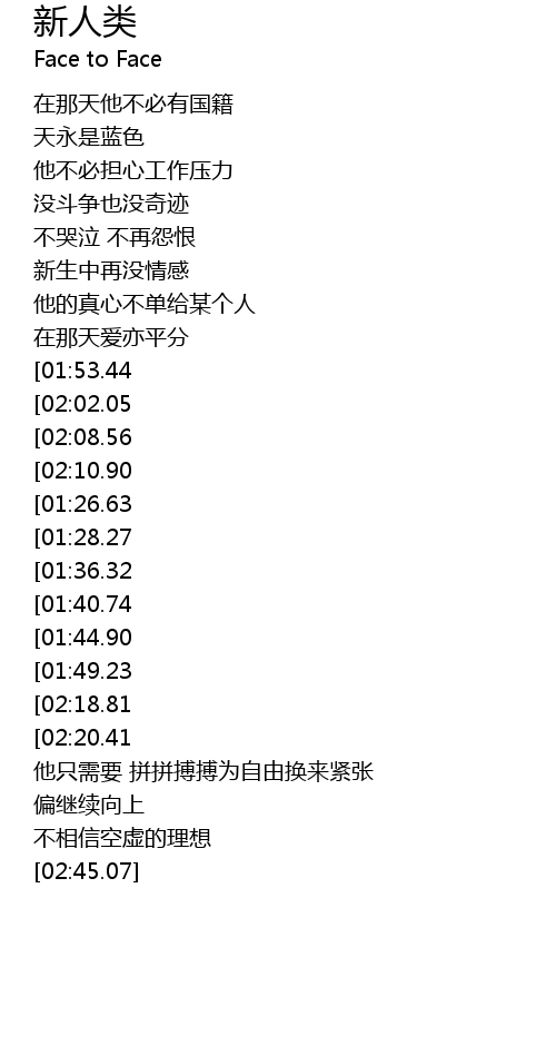 | [02:29.52] | 他只需要 拼拼搏搏为自由换来紧张 |