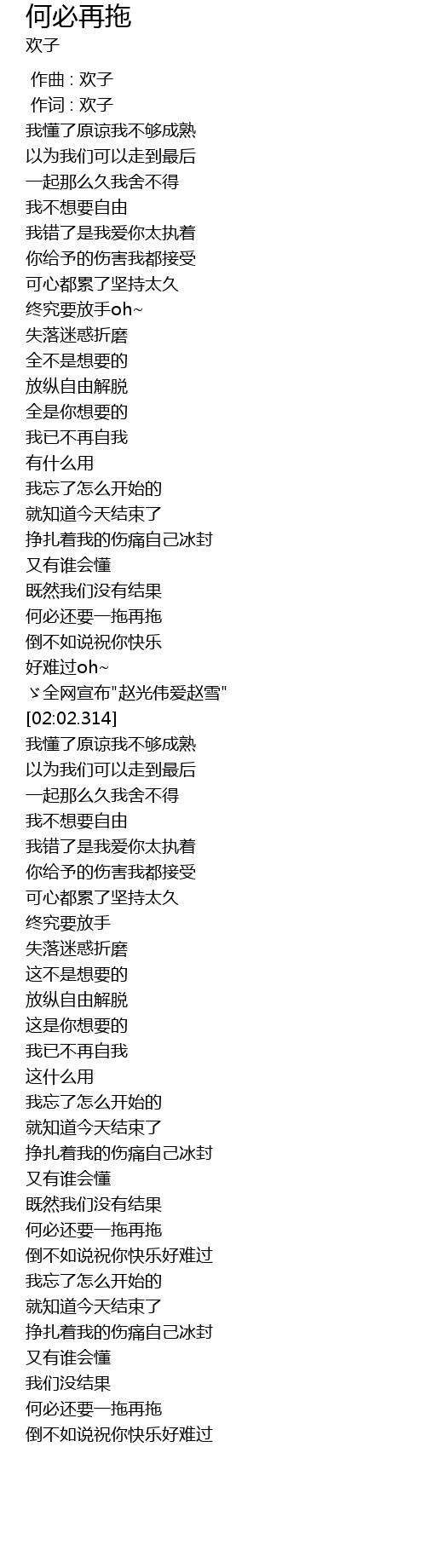 | [01:42.586] | hé bì hái yào yī tuō zài tuō |