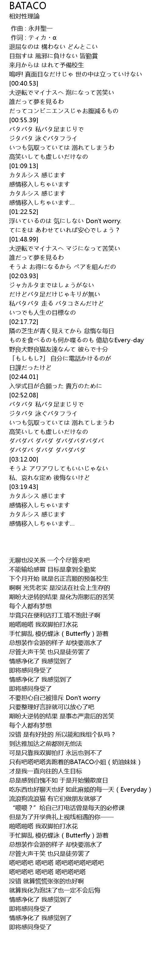 | [02:55.71] | ジタバタ 泳ぐバタフライ |