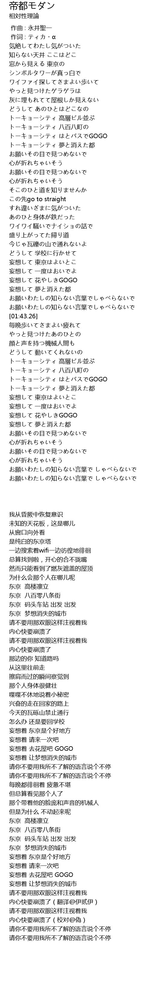 | [00:43.36] | トーキョーシティ 夢と消えた都 |