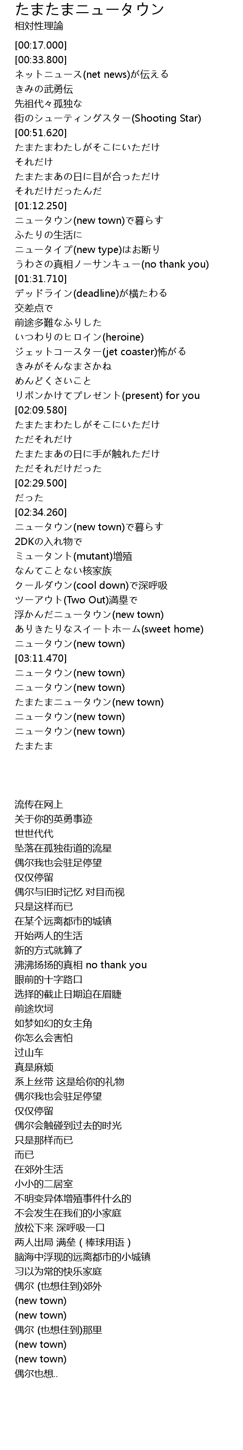 | [03:01.810] | 浮かんだニュータウン(new town) |